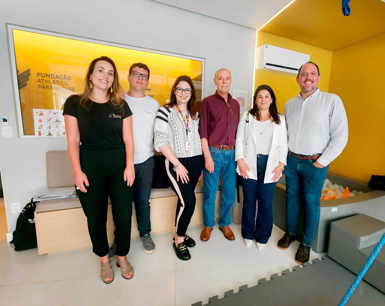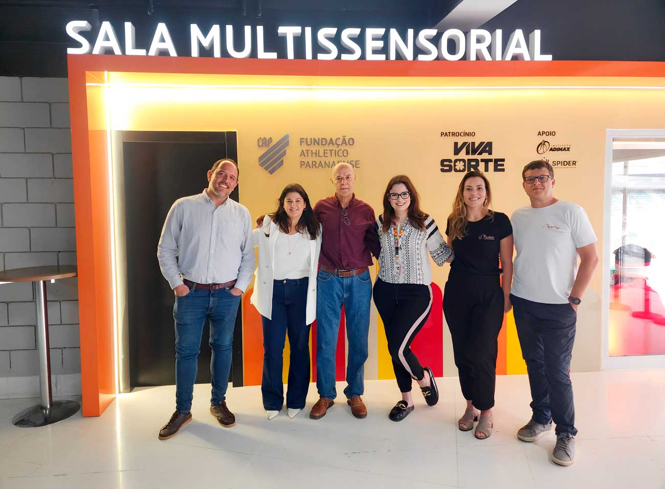 Diante da Sala Multissensorial do Athletico Paranaense, gestores e profissionais reafirmam o compromisso de tornar o esporte um espaço cada vez mais humano e acessível © CRP-PR