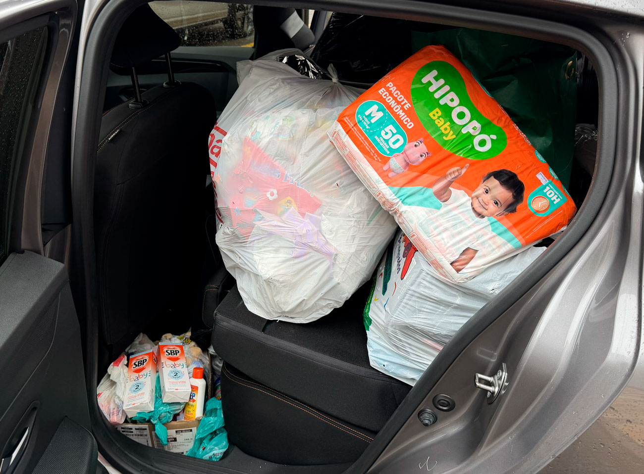 Entre as doações encaminhadas estão repelentes, destinados a crianças e adultos, e materiais escolares, como lápis, cadernos e cores, que desempenham papel fundamental no acolhimento emocional de crianças que ainda não conseguem verbalizar o que sentiram. Por meio do desenho, muitas delas encontram um espaço seguro para expressar medo, ansiedade, perda e esperança — dimensões essenciais no enfrentamento de situações traumáticas.