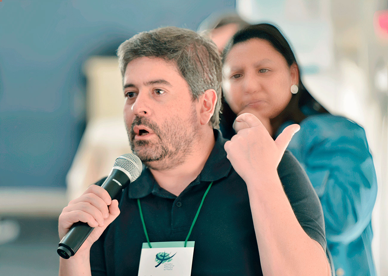 Ricardo Medeiros, jornalista da Fiocruz, faz pergunta aos palestrantes durante o encontro © CRP-PR