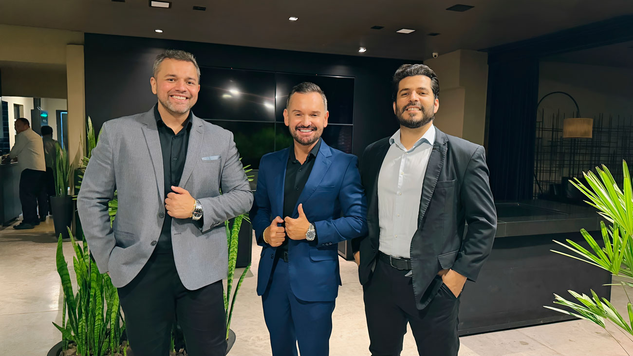 William Fernando, diretor de Novos Negócios da Sagacy; Da Silva, CEO da Sagacy; e Thiago Domingos, diretor de Projetos da Sagacy, celebram o êxito do encontro, consolidado como uma entrega consistente de conteúdo, articulação e direcionamento estratégico para o setor produtivo © Global Comunicação